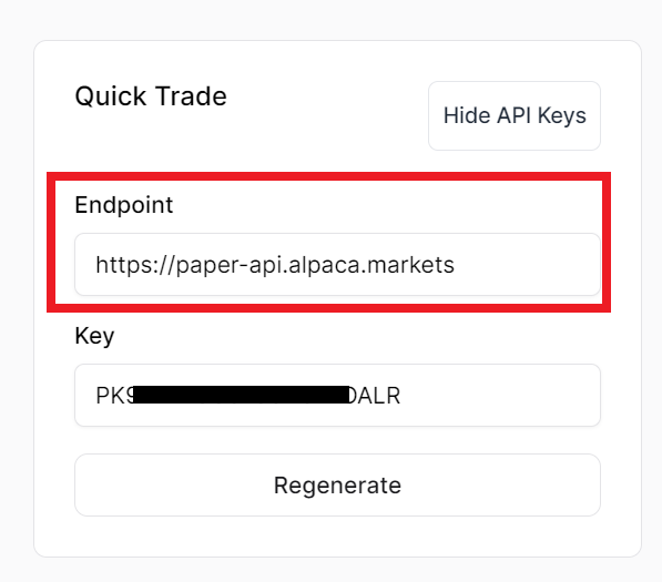 2. When you view your API key on the Alpaca site, what Endpoint is showing there?