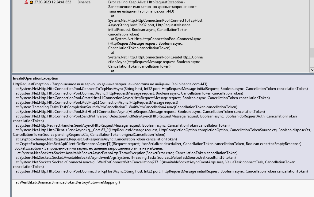 Error calling Keep Alive: HttpRequestException - Запрошенное имя верно, но данные запрошенного типа не найдены. (api.binance.com:443)