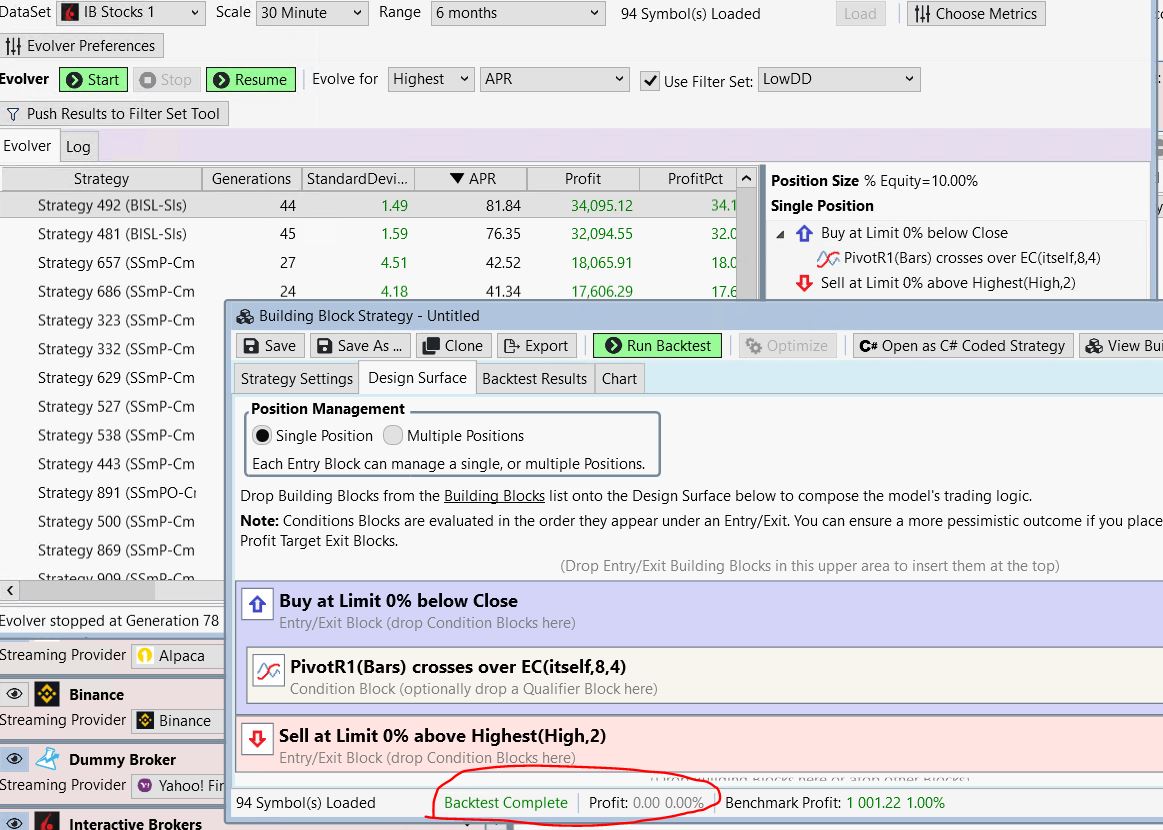 I didn't notice the 0 trades in the first case. I'm not familiar with the PivotR1 condition, but it must be pretty restrictive.