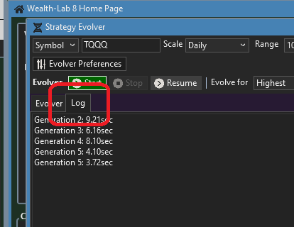 My Strategy Evolver simply will not populate columns with every generation. The program does progress through new generations, but no columns (except for the Generation number) are populated, even temporarily, as is the case with WL7 using the same settings.