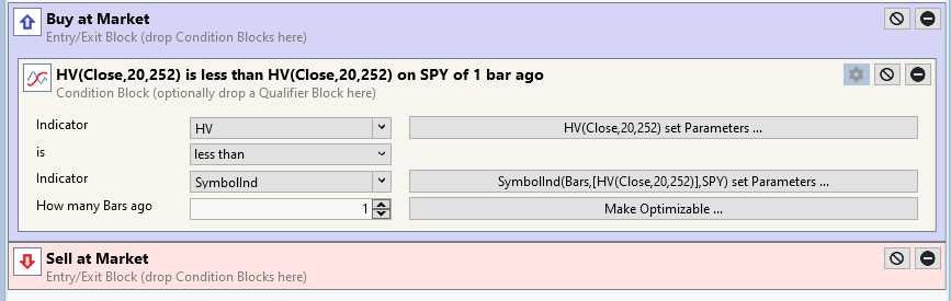 I would like to use the block building strategy to filter out the individual stocks from the DOW30 that had a higher HV on 09/08/2004 than, for example, the SPY.