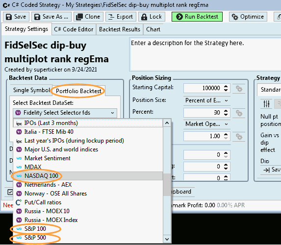 So you're saying you can't get the Portfolio Backtest menu below to select the circled datasets?