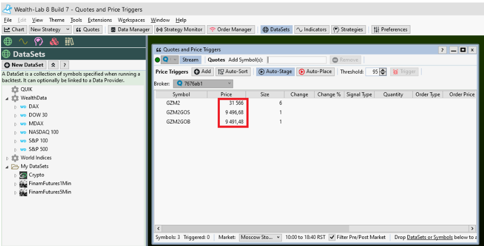 I managed to set up the export of the necessary quotes in real time, but I don’t know how to get them in the strategy code. I have previously asked a question not directly related to this topic.