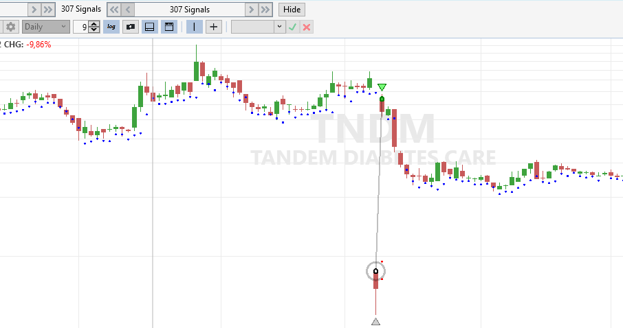 When looking into the logs I saw that 3 spikes were found for TNDM but not the one on 9 oktobre 2017.