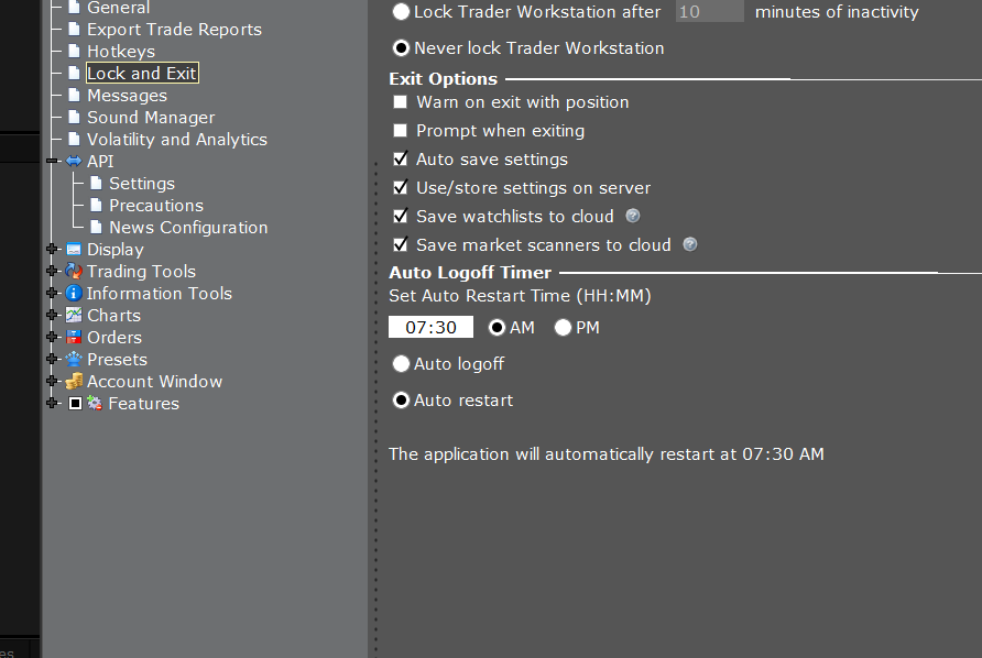 I also recommend that you restart WealthLab after the TWS restart to ensure a good reconnect to TWS, but you can take your chances. You can schedule WealthLab restarts using the Task Scheduler. See Help (F1) > Workspaces.
