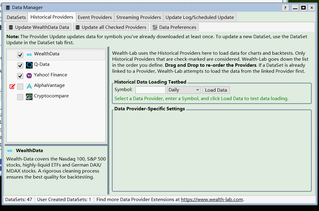 I just tried to connect to IB Broker according to the extension page("https://www.wealth-lab.com/extension/detail/InteractiveBrokers"). But when i came to step 2 of One-Time Setup Instructions, I could not find any selection of ib in "Data Manager > Historical Provider tab". (Shown as the attachment)