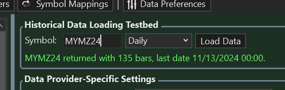 I am not even assuming it’s a WL problem. When I go and check for data coming from IBKR in the Data Manager, I am not getting any data in the “Data Loading Testbed” for MYMZ4 while I do get data e.g. for MESZ4 and I’m just wondering whether WL or the IBKR extension is doing anything additional in the process to get an API response?