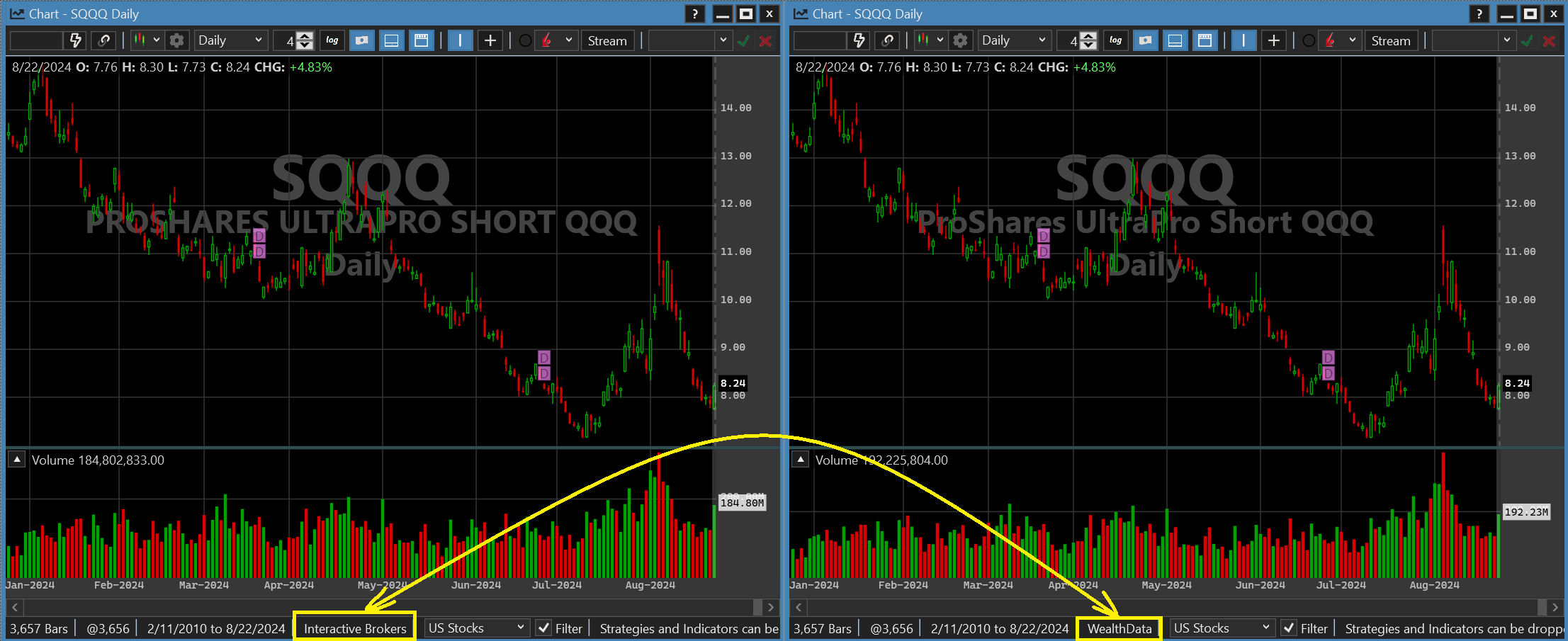 For me, IB's data and symbol name look about the same as Wealth-Data -