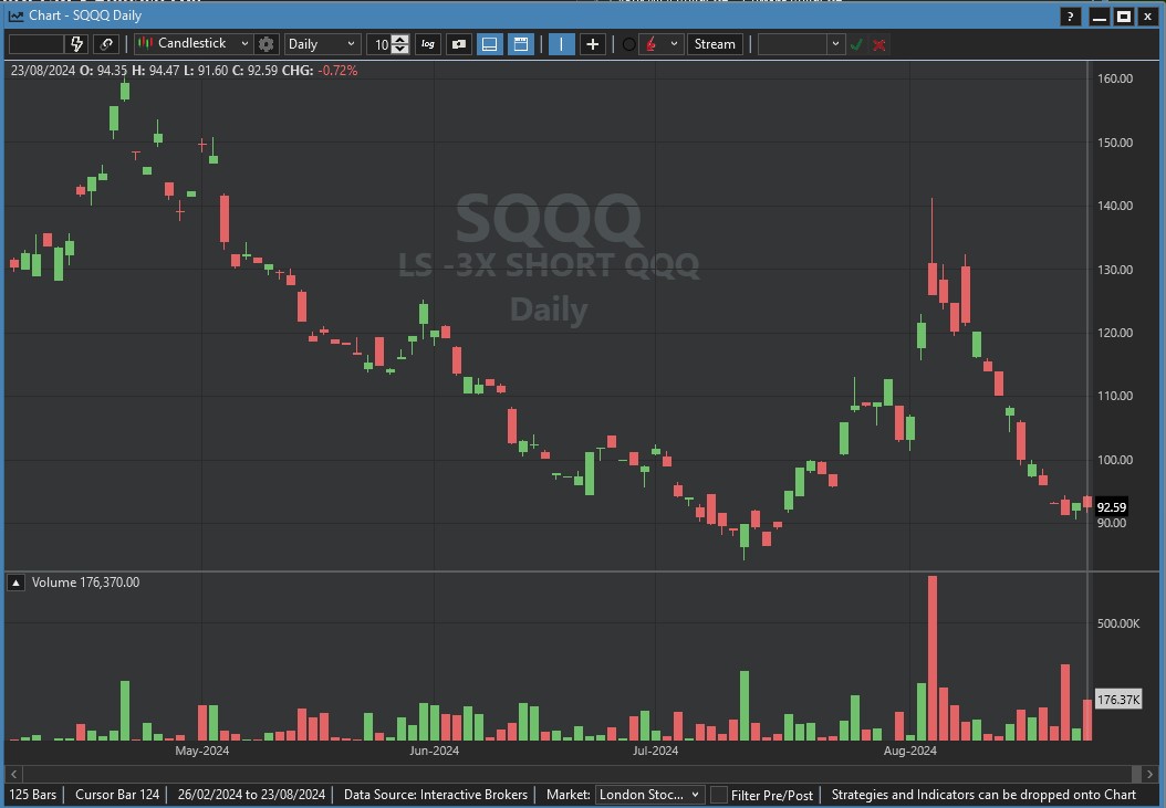 I set up a dataset through IBKR containing SQQQ. If I start a chart using the dataset it shows 'LS - 3X short QQQ'.