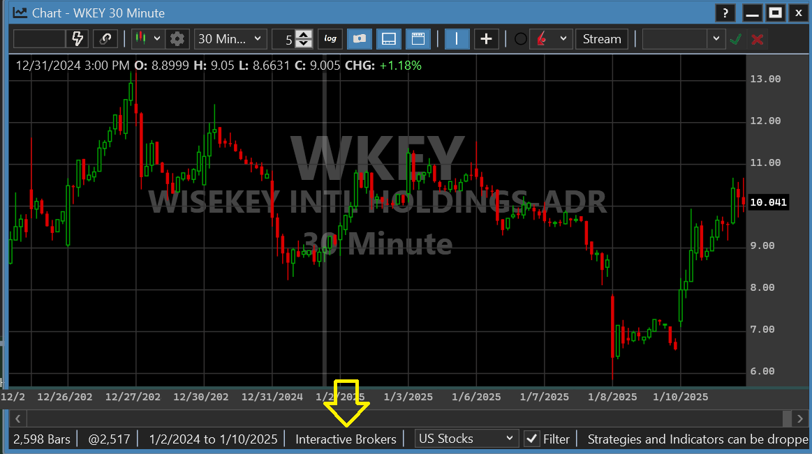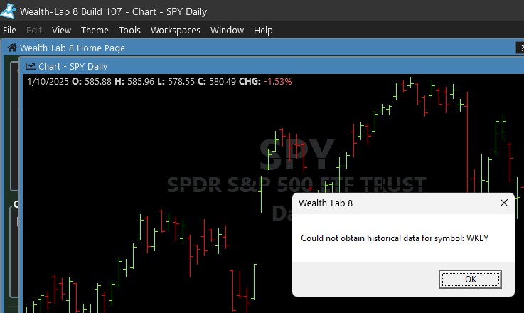 After updating to the latest WL8 and IB connector today, getting the error "Could not obtain historical data for symbol: WKEY". Plain chart, no code.