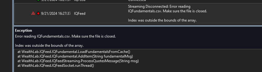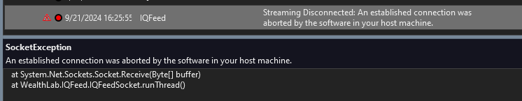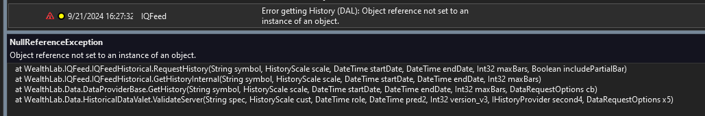 I subscribed to IQFeed today and started downloading 1 minute bars for S&P 500 symbols. At first, everything seemed to be working fine. Then, I started getting several errors.