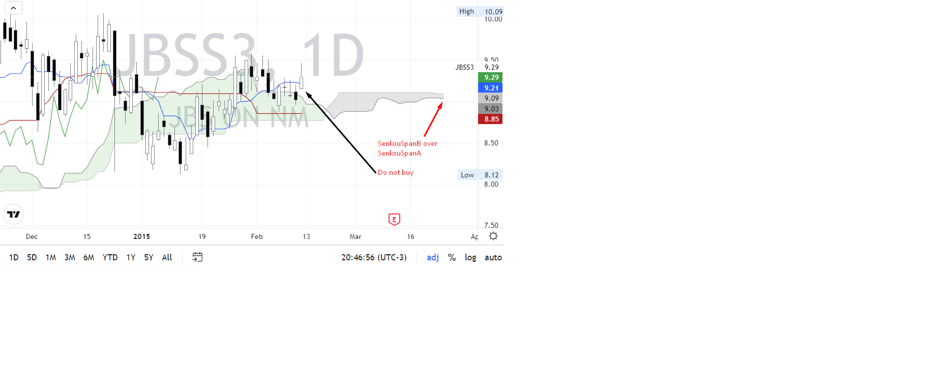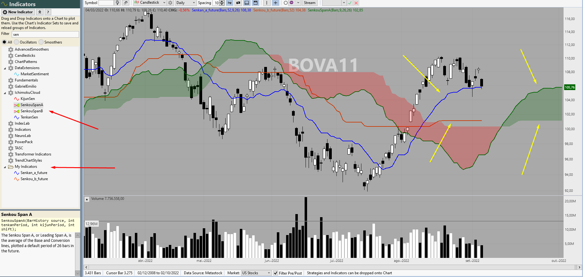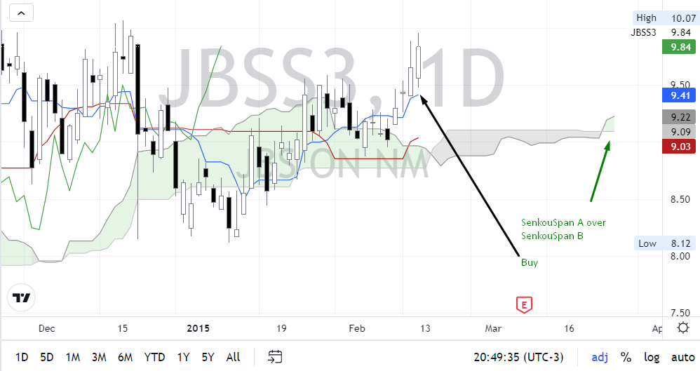 Is there any way to consider the ichimoku clouds (kumo) that are projected into the future to enter a trade using building blocks?