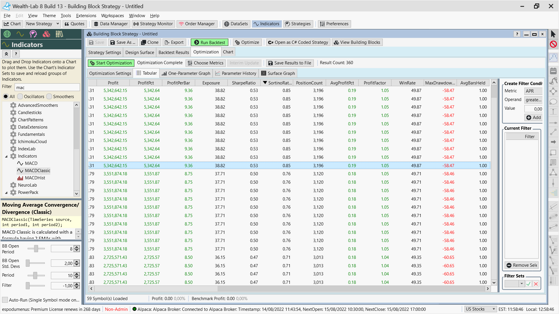 Next image is the Optimization using 30 years of data. BTW, dataset is 60 of the most traded symbols, extracted from the Nasdaq100.