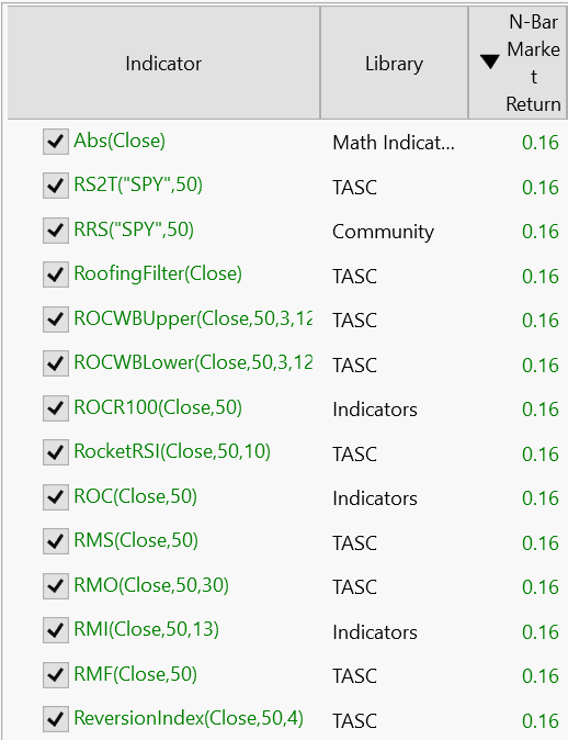 As long as I can remember, the Indicator Profiler has shown the same "N-Bar Market Return" value for every single indicator after a run. Shouldn't it be different for every indicator?