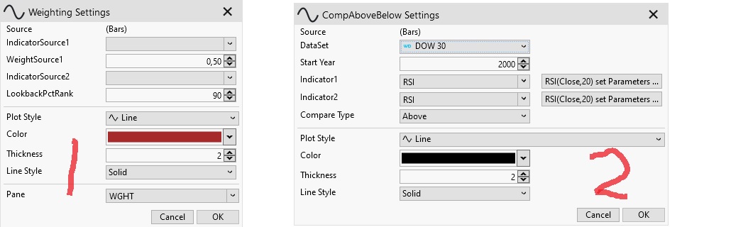 When dragging the indicator on a chart the window looks like screenshot 1 (and "WGHT" pane on chart remains empty). What is the correct syntax that it works like screenshot 2?