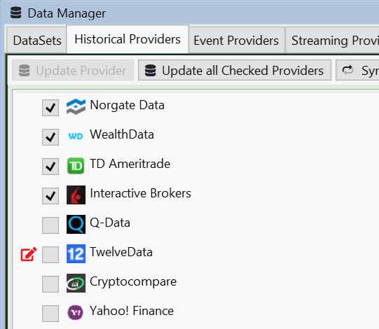 In general, WL8 goes through this list of checked providers from top to bottom priority to access data.