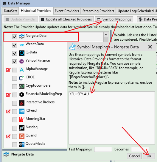 Tried Historical Provider/Norgate /XFL but did not work - XFL is symbol for S&P ASX 50 thus something wrong with Norgate transfer.