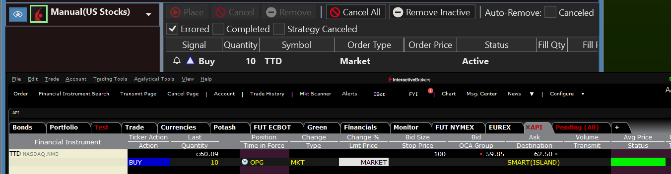 Order transfer from WL to IB via interface. I'm Trading a market order strategy.