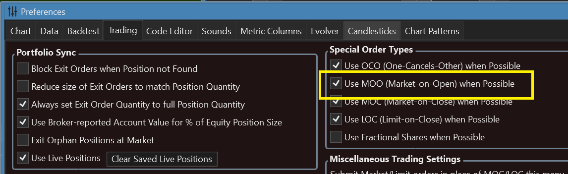 I just thought to test it now, far outside of market hours, and for reasons not yet determined, the setting for MOO is not being transmitted properly for the Transaction. We'll work on it.