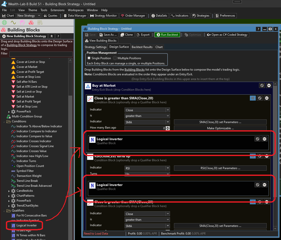 I am looking to add some blocks in my strategies that will evaluate as "true" when something is NOT occuring. For example, instead of seeing if an indicator has crossed another, I would like to evaluate for the indicator not to have crossed. Is there a simple way of doing this that I have not figured out?