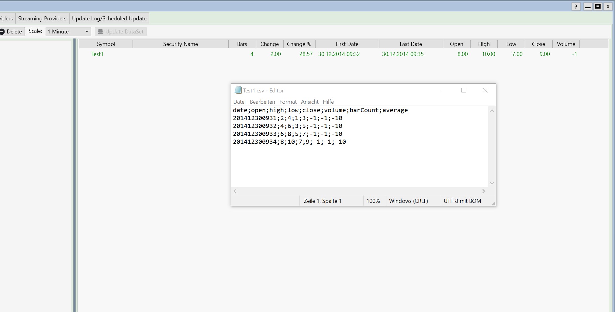 While trying to generate 1 minute test data for the request, I stumbled upon the next challenge. I enter the bars from 09:31 - 09:34 as ASCII data, in the datamanager they appear as 09:32 - 09:35. I assumed that the 1st bar in a 1 minute chart runs from 09:30 - 09:31 and has the timestamp 09:31. Am I wrong here?