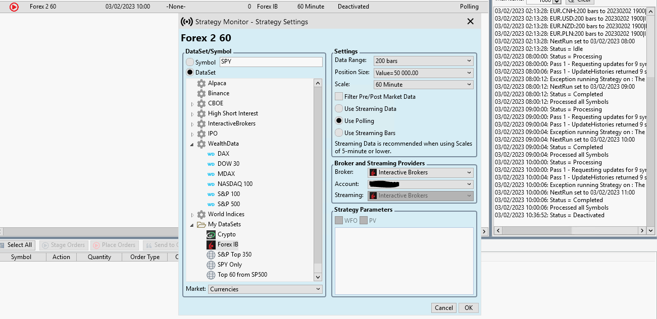 QUOTE:I couldn't duplicate that. Last Run and Next Run are displayed in your machine's local time. My machine is in EST, it's currently 2:44AM EST the next Run for a "Currencies" strategy is 3:00AM.