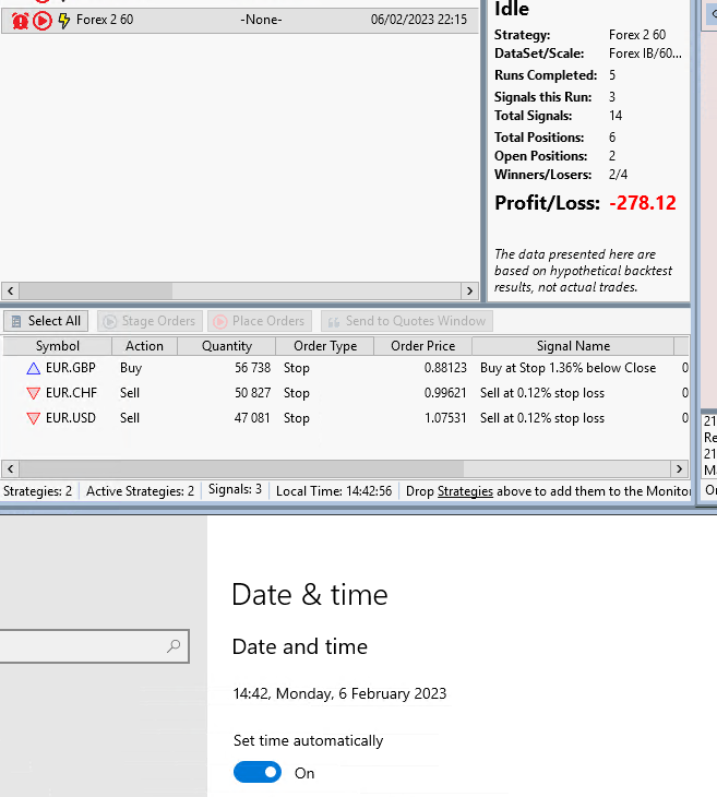 Also on another strategy, which is on 60m forex noticed incorrect work. According to Markets and Symbols today it has to work 24h, however next run in strategy monitor is only next morning at 08.00. For more, some stop orders that are issued by the strategy are displayed with the status error:
