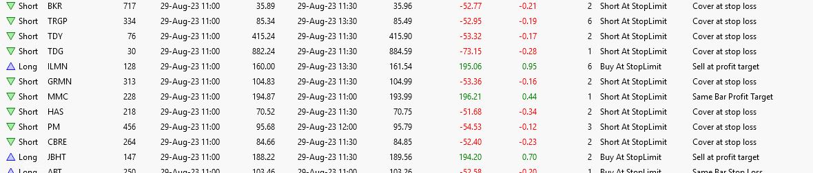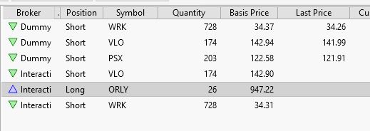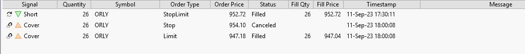 No, I didn't touch the program at all. Today I looked at the broker's report, ORLY was bought at 947.18 with a limit order, and this as you can see from the first screenshot matches my TP for the short position that should have been there originally. The strategy only enters with stoplimit orders.