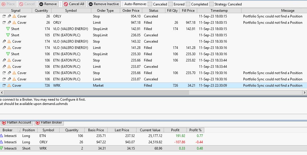 I forcibly closed all live positions through the Flatten broker to test today with a clean slate.