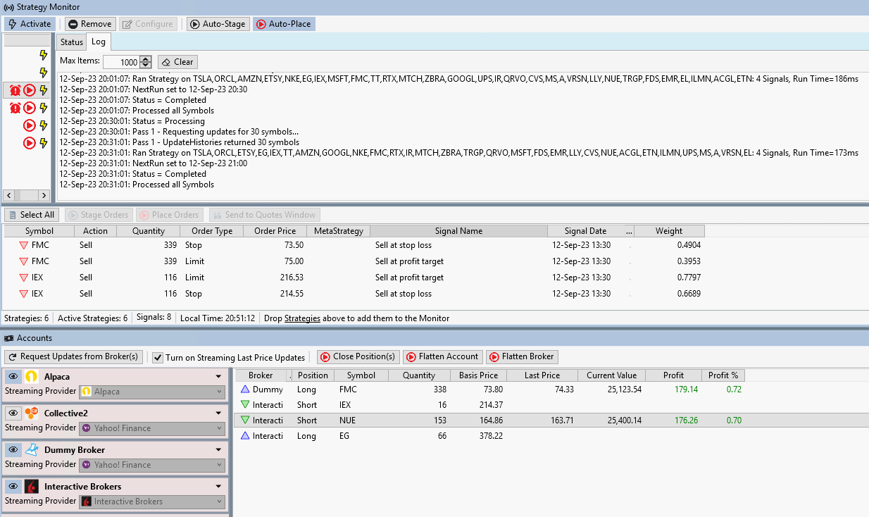 Secondly we have the standard portfolio sync methods, which let you for example limit the size of the exit based on the shares in the broker reported position.. This option retains your theoretical backtest positions but adjusts the size of the signals for live trading. If the broker doesn’t report new positions in. timely manner via their API then this method can suffer.