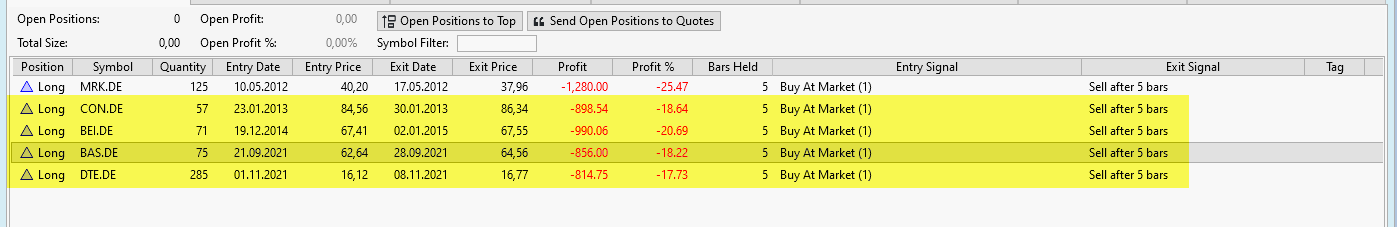 Yes, it's covered by the website FAQ > "Why are all my backtest trades negative?"