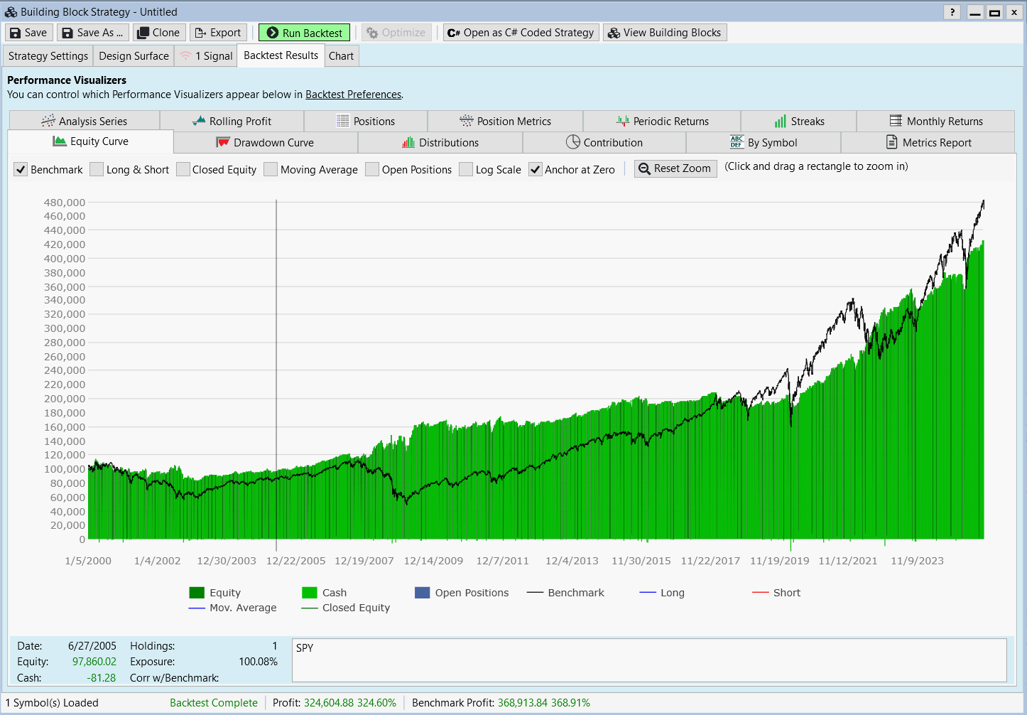From the two equity curve screenshots I noticed that in the first screenshot by anderson the DD started in 2000 was conquered sometime in 2005. In the second screenshot by vk, a new ATH was reached in sometime in 2003 or early 2004. Given that this strategy only holds positions a few days on average, what could be the reason behind this difference?