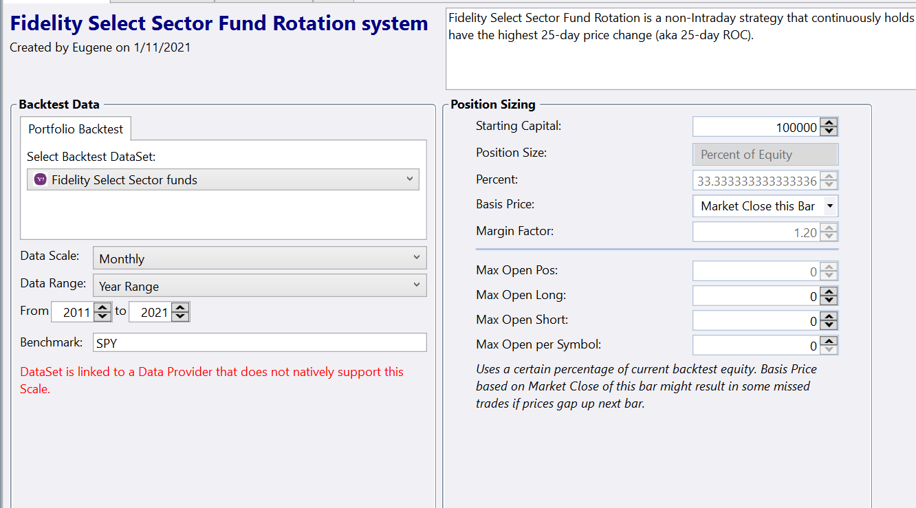 So I tracked down where the problem seems to be. I was able to recreate it using the sample Fidelity Rotation Strategy by using the Monthly scale.
