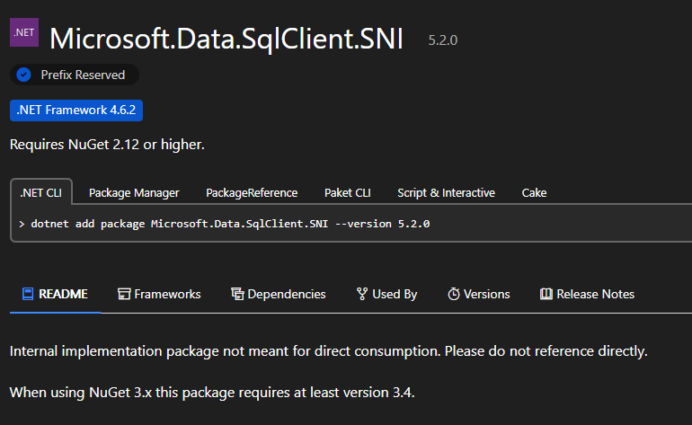 nuget says this is an "internal implementation package".