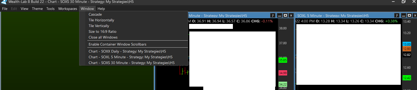 Note that all windows are loaded - they are listed in the Window drop-down. But the left one is hidden.