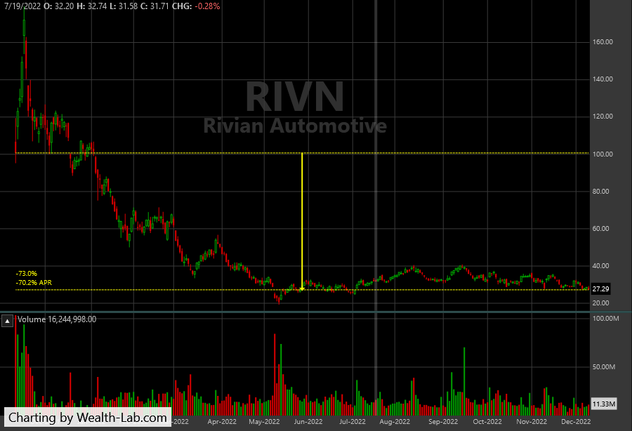 RIVN $16-and-change per share now. That's something like a 40% drop in about 1 month since it was added to the Nasdaq 100 and about 85% down from its November 2021 IPO. Who got paid to put this junk in the Nasdaq 100 to try to save it? Should be a crime.