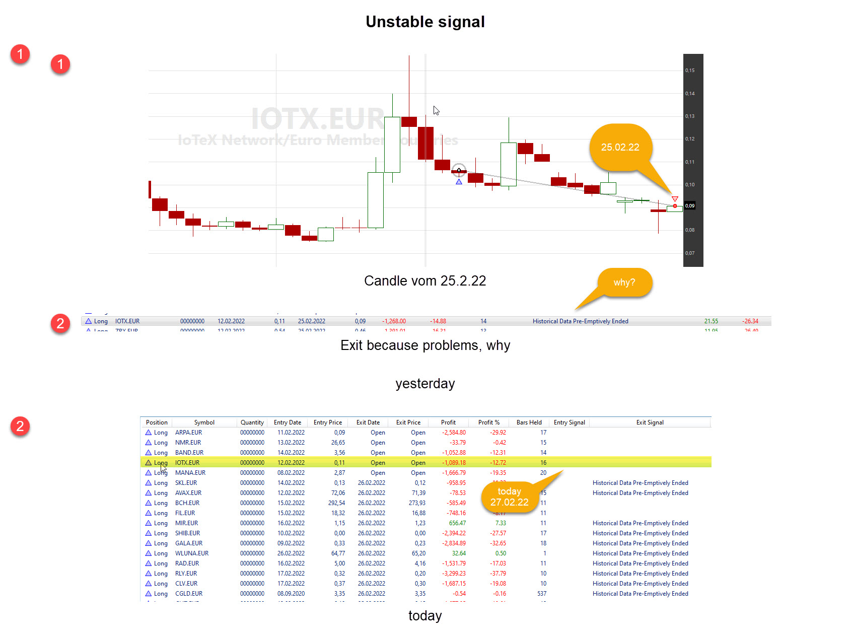 Another problem is that a signal I traded a week ago has disappeared.