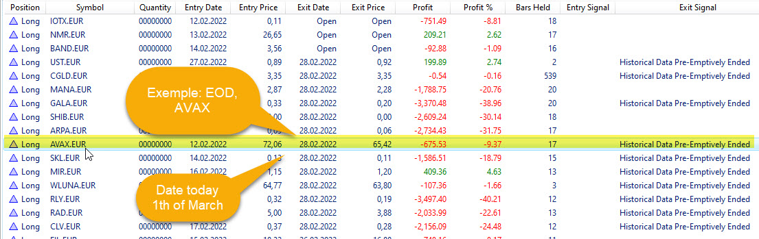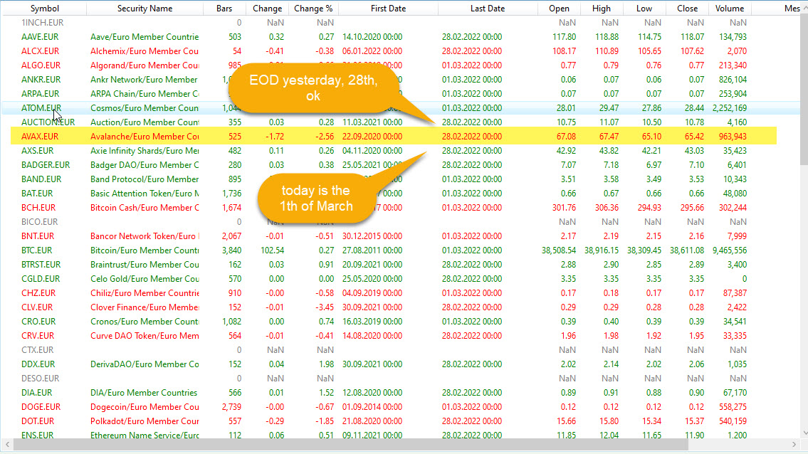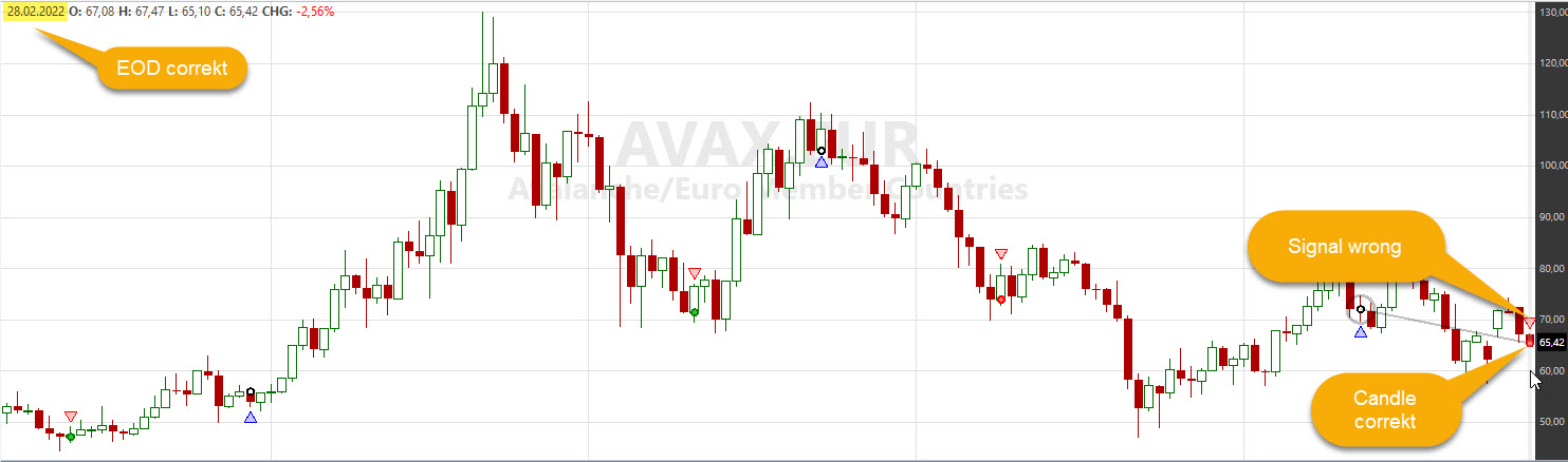 Today, March 1, the problem persists. Although the EOD prices from yesterday, February 28th were imported from Coinbase, false signals are generated. So I can not use WL. No reliable signals are generated.