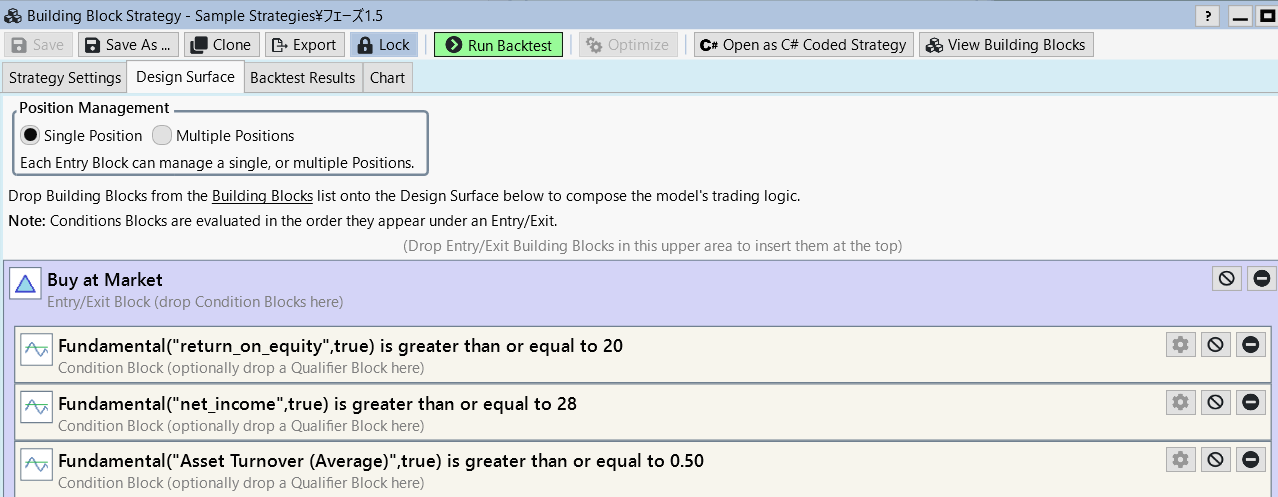 As you can see in the attached image, I have set up some fundamental conditions and backtested them and the results are all 0% and do not work well.