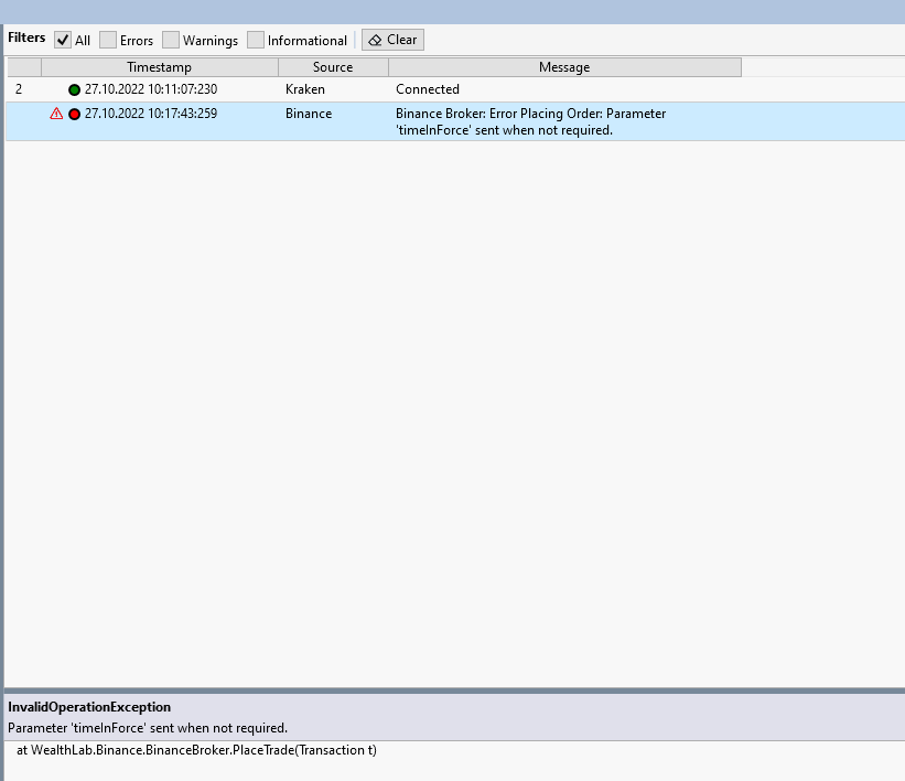 Binance Broker: Error Placing Order: Stop loss orders are not supported for this symbol.
