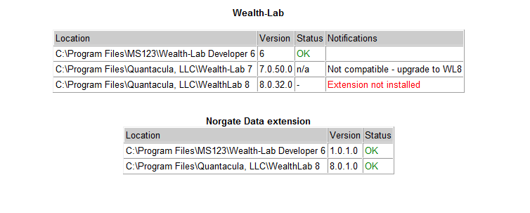 I've installed the Norgate extension in WLv32. I see this in NDU v4.2.1.77 > Integration > Wealth-Lab: