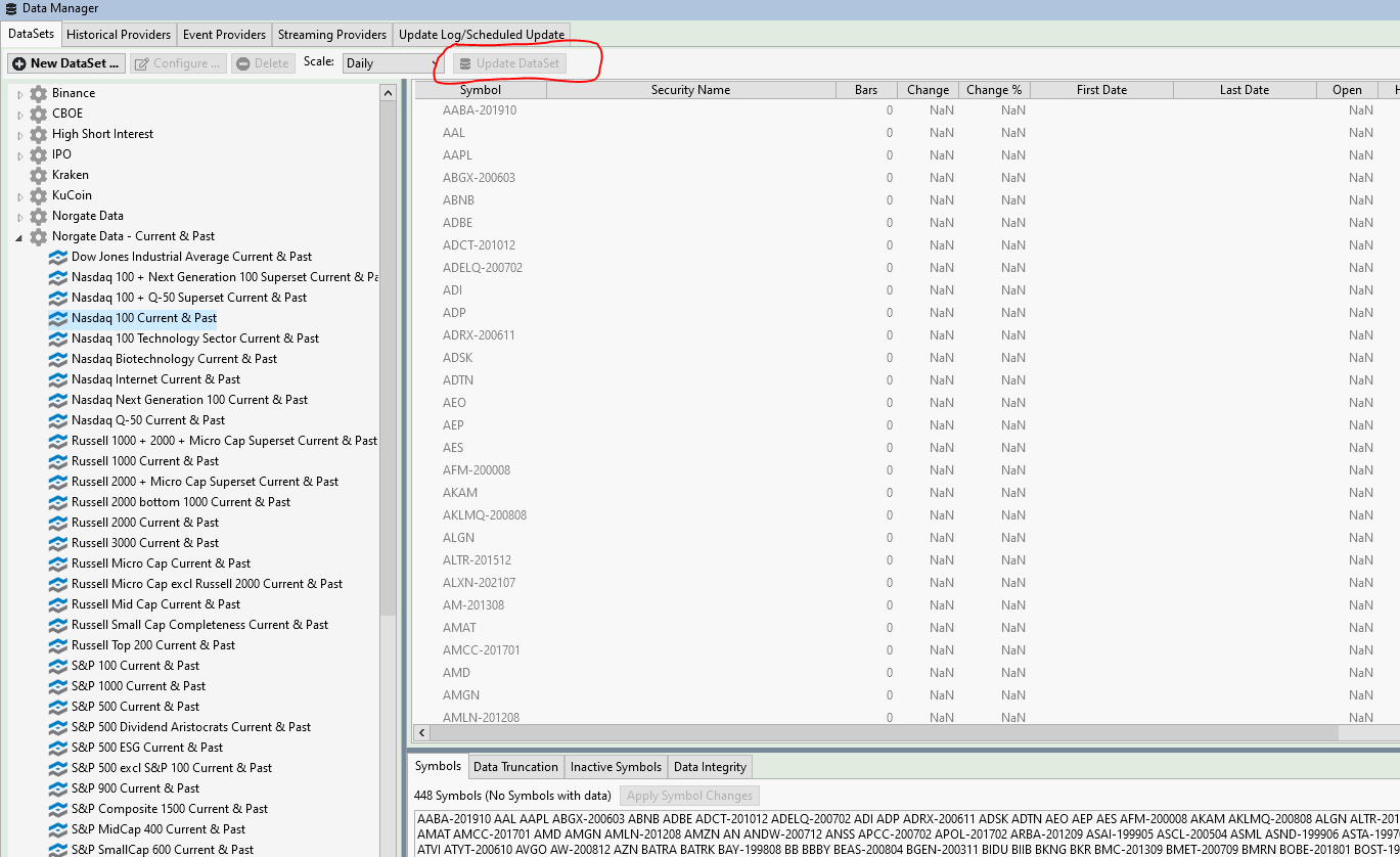 How to update Norgate Datasets? Button not available.