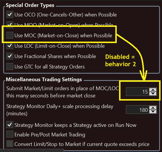 There are 2 MOC behaviors based on the Trading Preference for "Use MOC when possible".