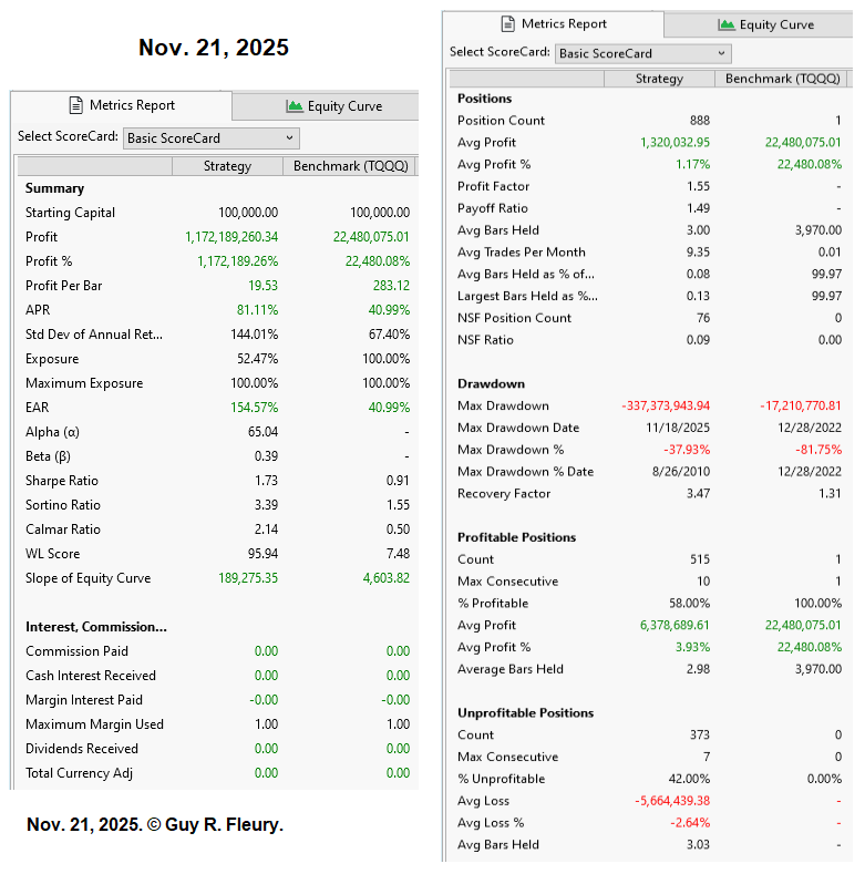 @Cone, market drawdowns are a problem for any trading system, even for the OPPW TQQQ strategy. TQQQ has never experienced a period like the 2007-2008 financial crisis. However, during that time, QQQ had a drawdown of -87%, while SPY went down by -56%.
