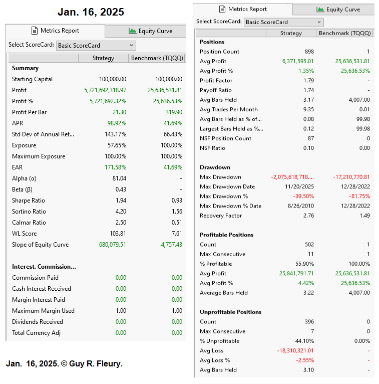 As said before, there is room for improvement in my version of the OPPW TQQQ strategy. To show there is, here is a screenshot of my latest Summary Report.