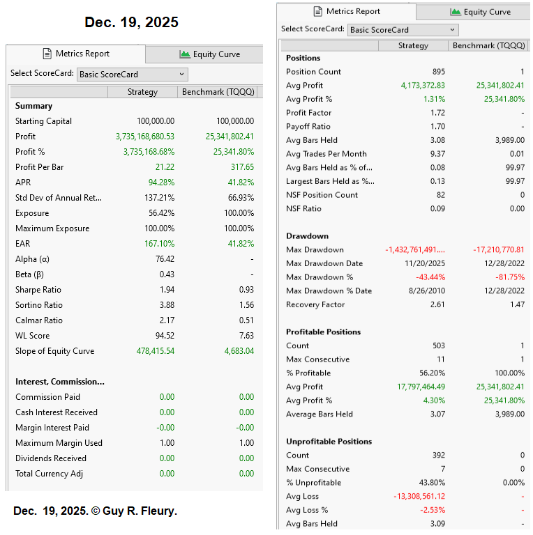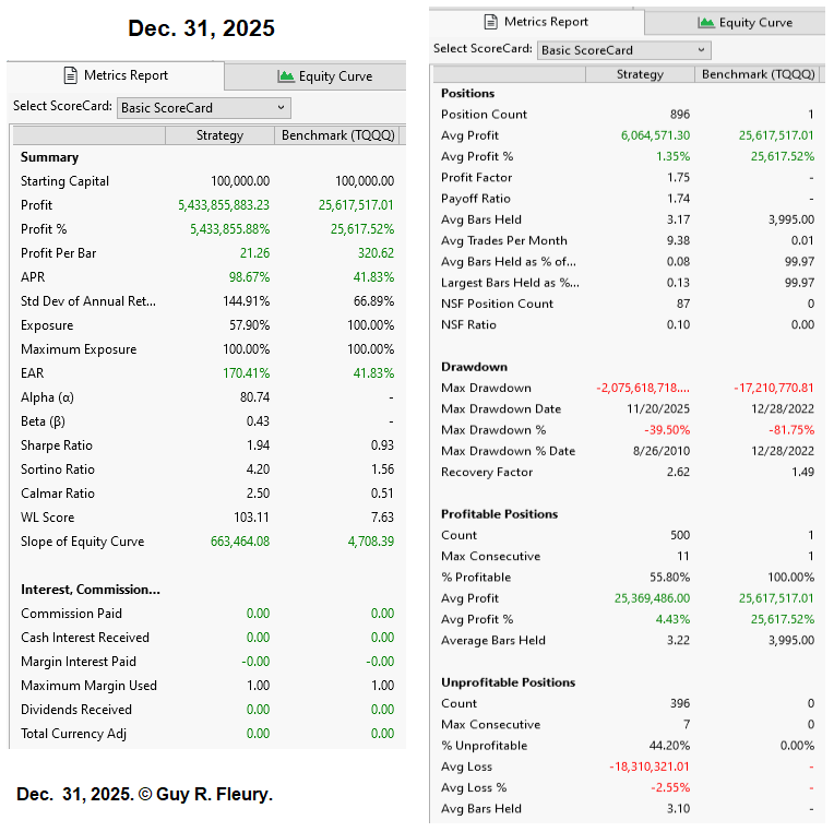 As said before, there is room for improvement in my version of the OPPW TQQQ strategy. To show there is, here is a screenshot of my latest Summary Report.