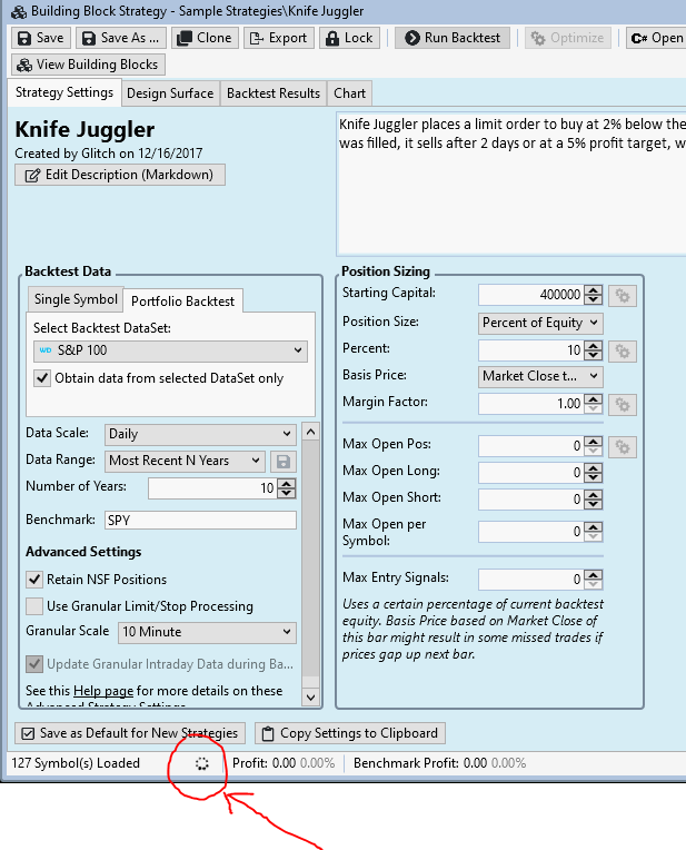 Today I also noticed that when testing the strategy on datasets, the symbols are loaded, but things don’t go any further - the wheel spins and nothing happens....