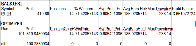 I have a strategy working on 1 minute bars (10 day) and when submit the optimized parameters to the back tester, the results are $100 less than the optimizer but the trade counts and other metrics match: