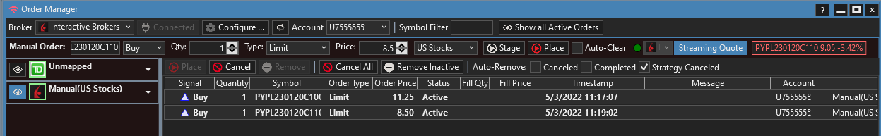 I want to be clear: I am *not* looking to backtest option strategies on the option symbol or looking for historical option data. That's an entirely different issue and not a requirement for me. I am only looking to have functionality available to support live option trading (assuming trading signals don't require historical option data.)