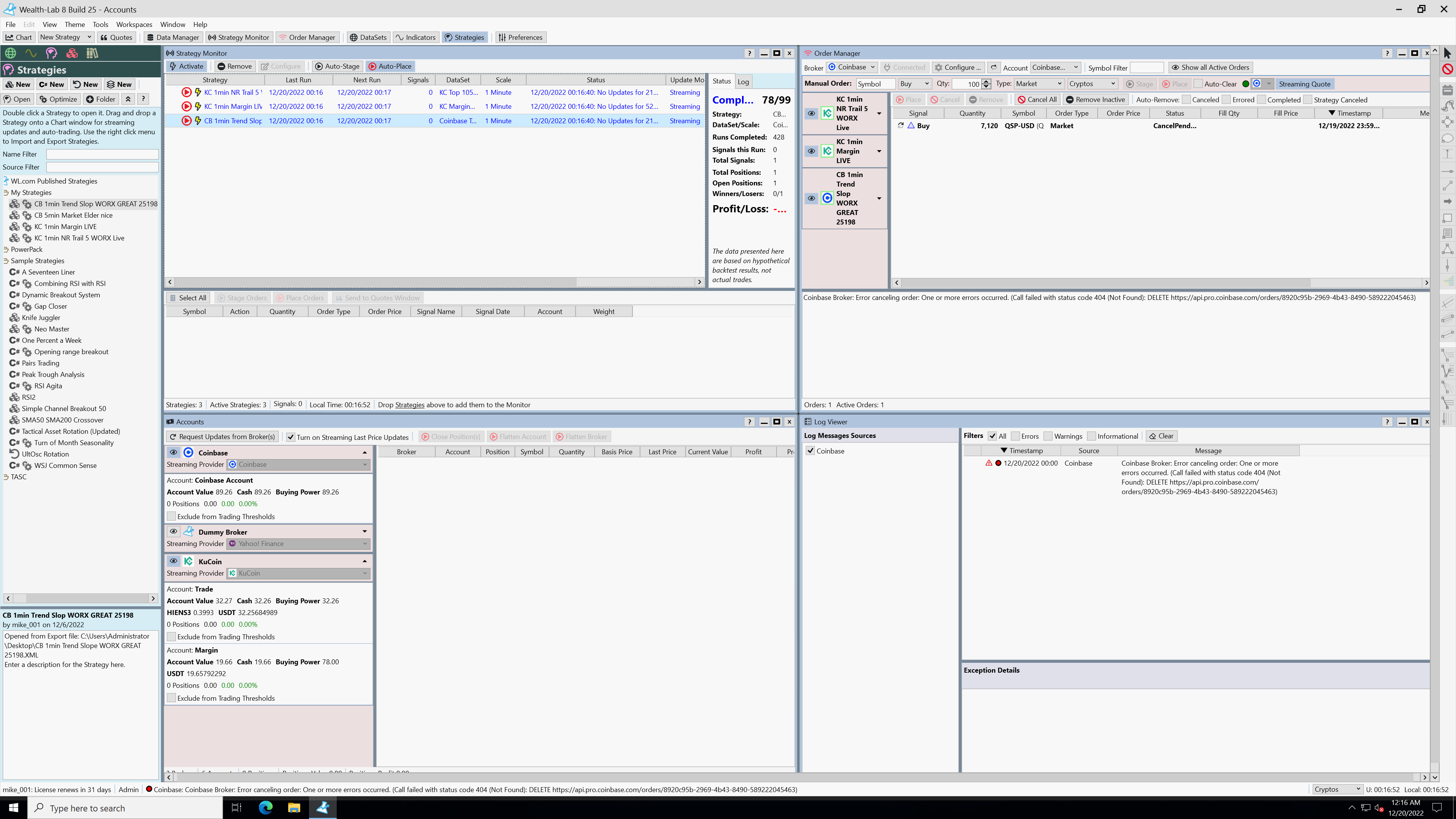 Here is a CancelPending error that just occurred on an AWS machine. As usual when this happens, this order actually succeeded, and after pressing "Request Update from Broker" I see the information about the Position that was created.